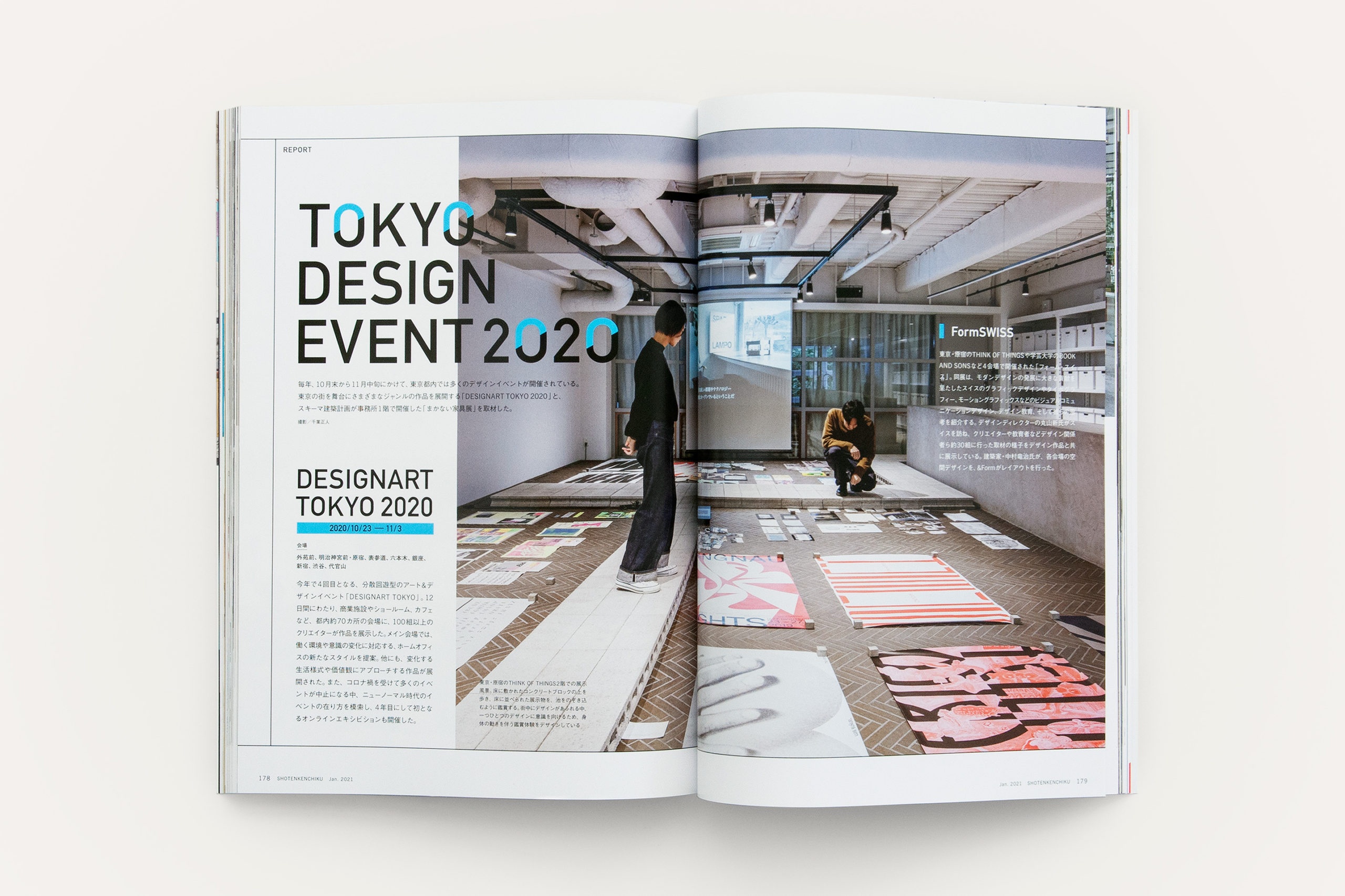日本の店舗デザインを中心とする商業建築デザインを国内外へ幅広く紹介している専門誌『商店建築』2021年1月号にて、Form第一回目となる「FormSWISS展」をレポートして頂きました。昨年秋に東京で行われた主要デザインイベント特集の巻頭ページ(P.178-180)に掲載されています。是非ご覧下さい。