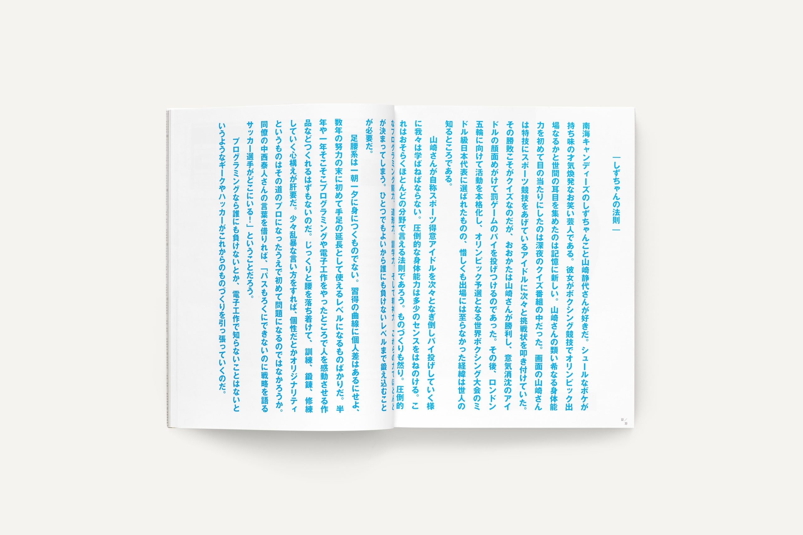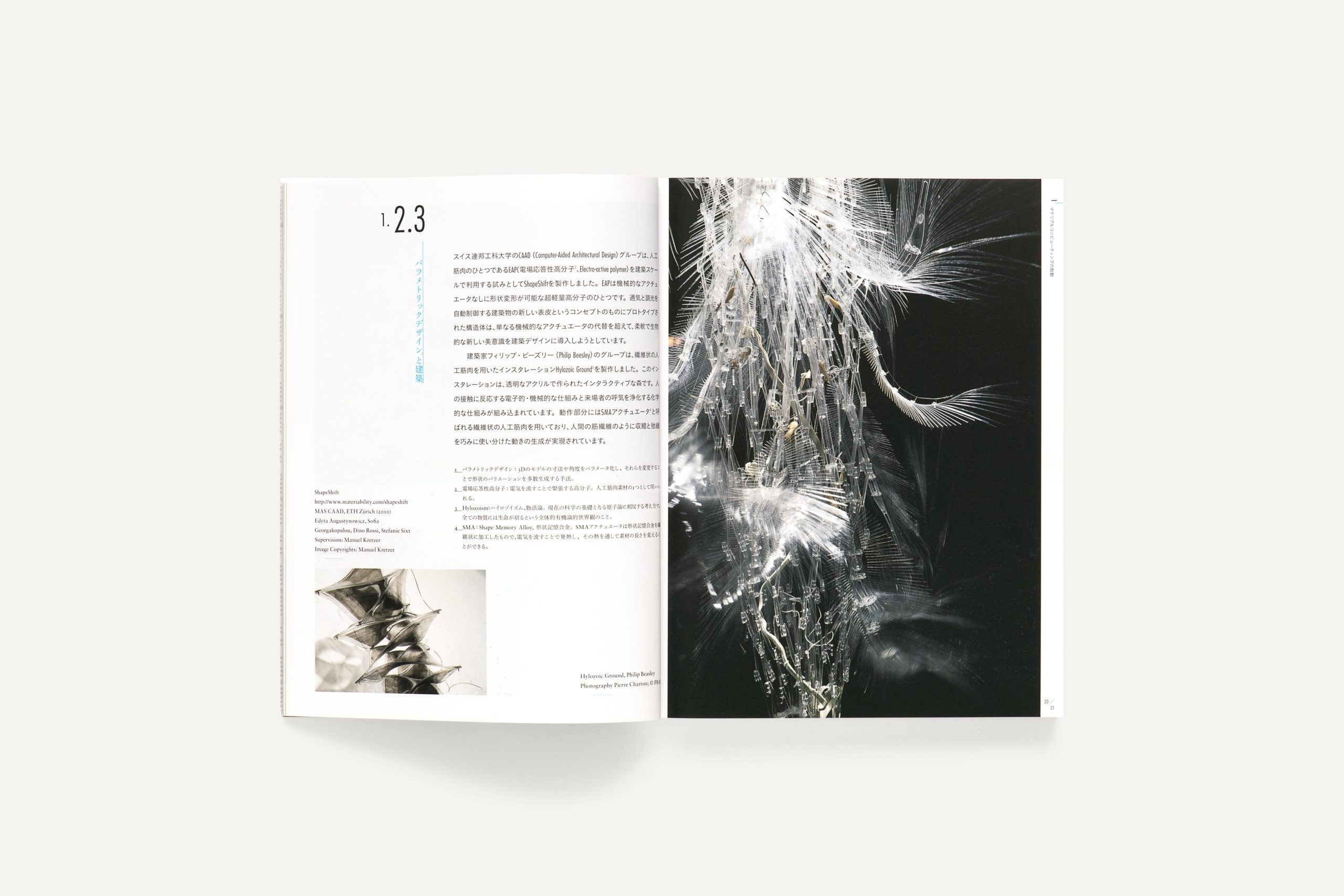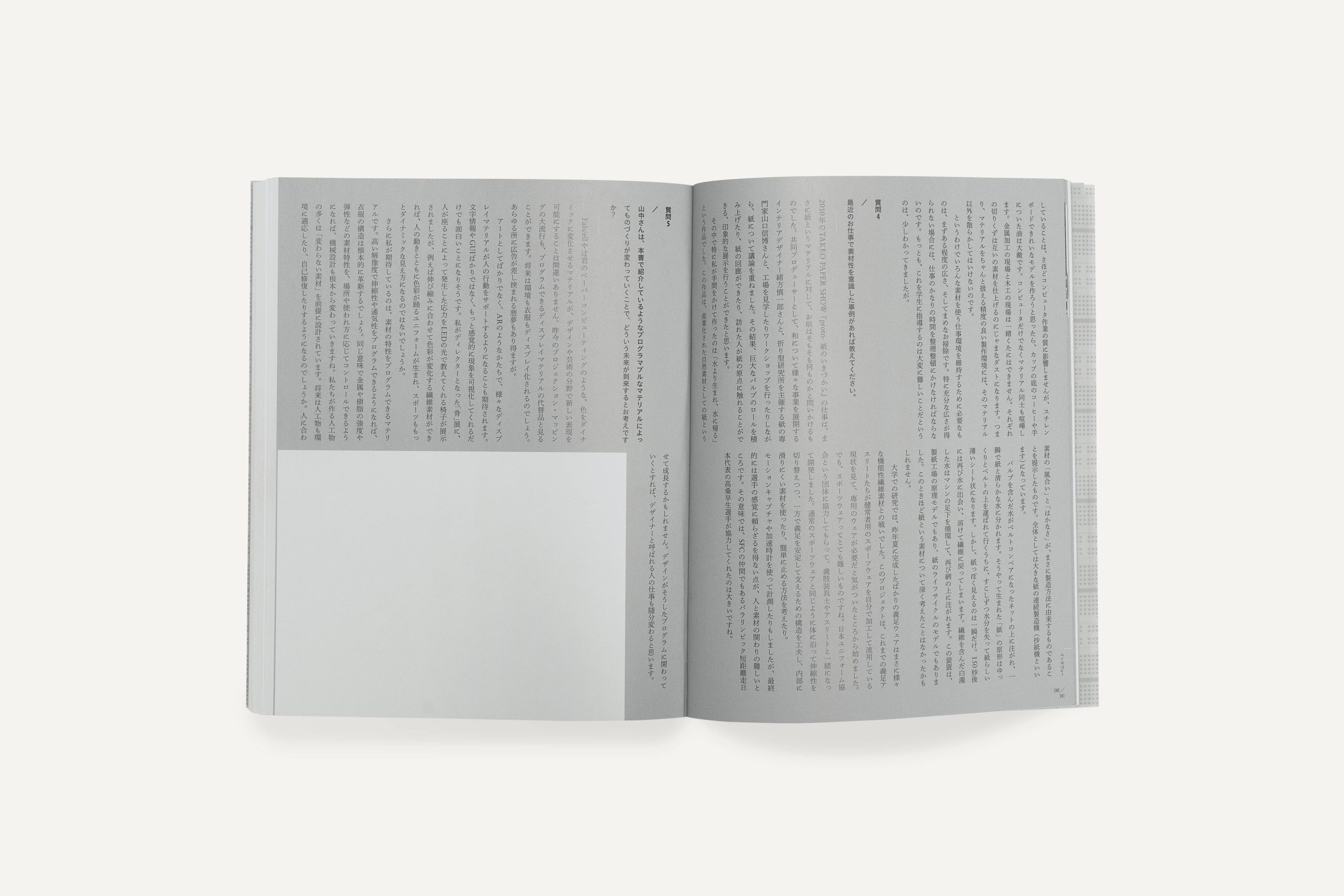 明瞭な可読性と教科書が持つ品格を意識しながら、あえて相反する前衛的なデザイン要素を織り込むことで、脇田氏の研究が次世代のデザインや生活に多岐にわたる影響を及ぼすものであることが視覚的にも感じられるように努めた。