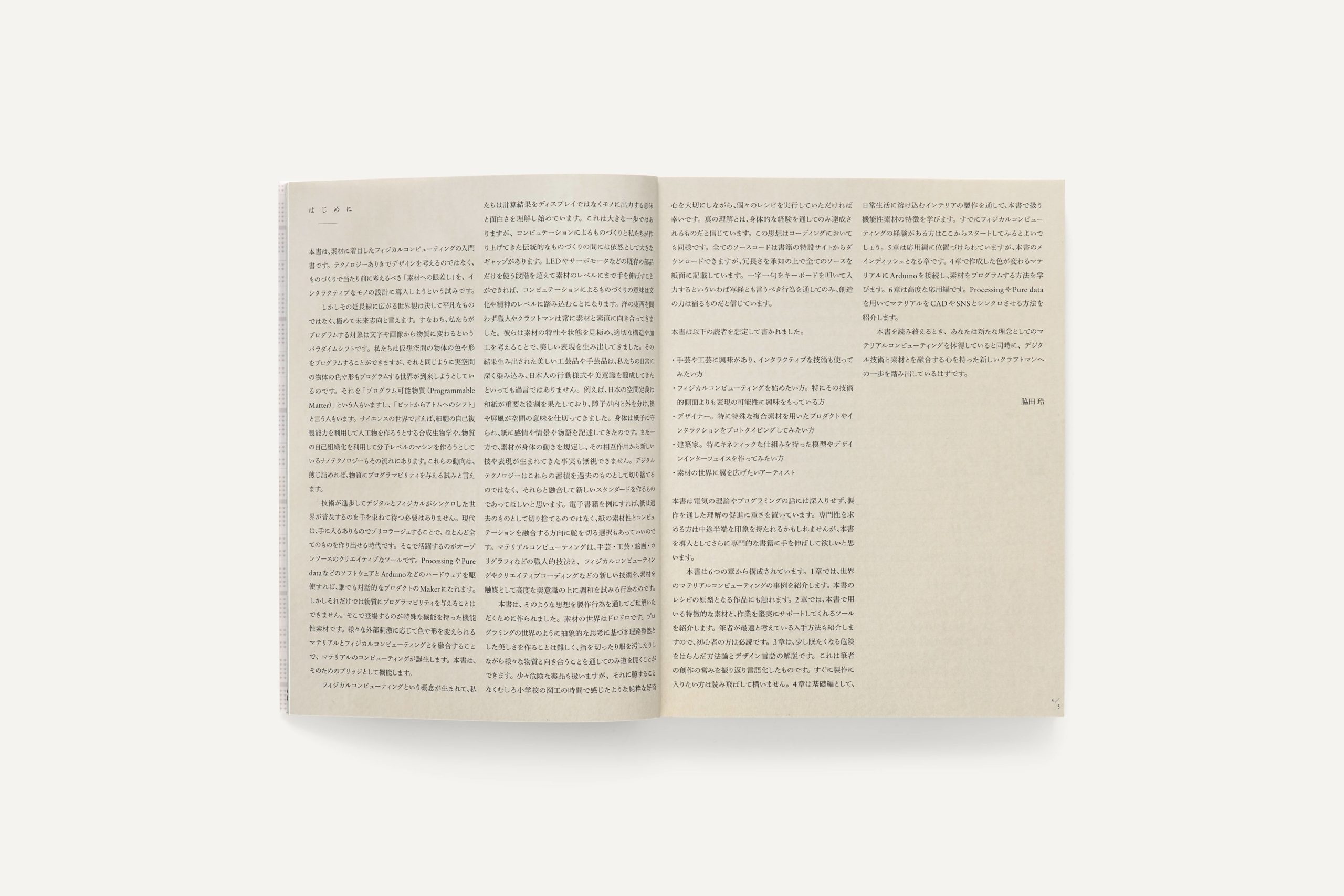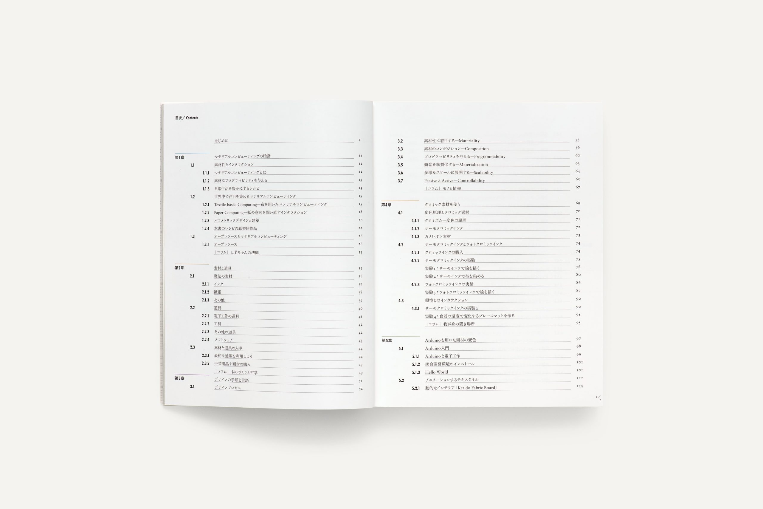 慶應義塾大学SFCで研究室を持つ脇田玲氏の過去10年間のマテリアル研究をまとめた書籍のデザイン。一般発売されるだけではなく同大学の教科書にも使用される本書。