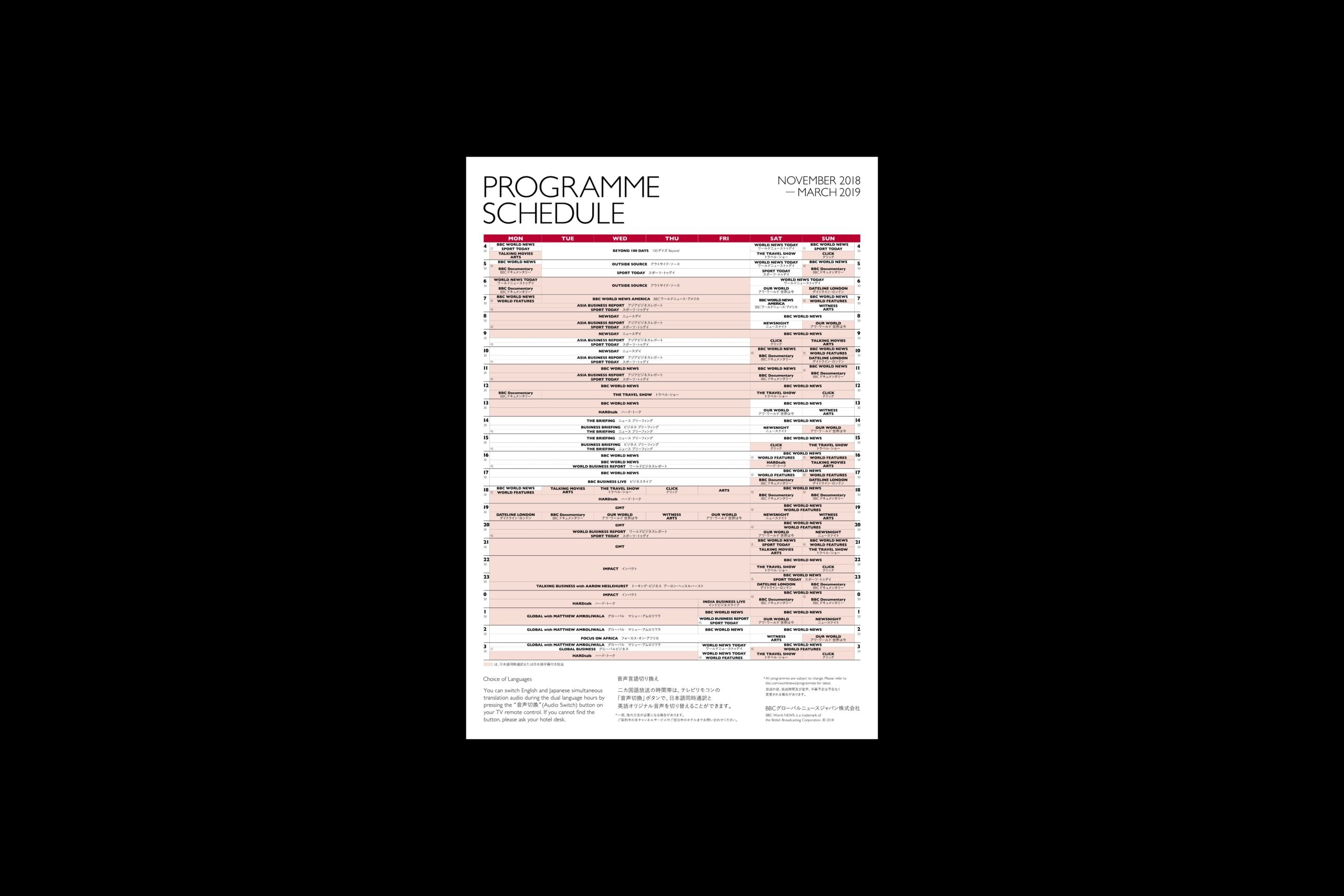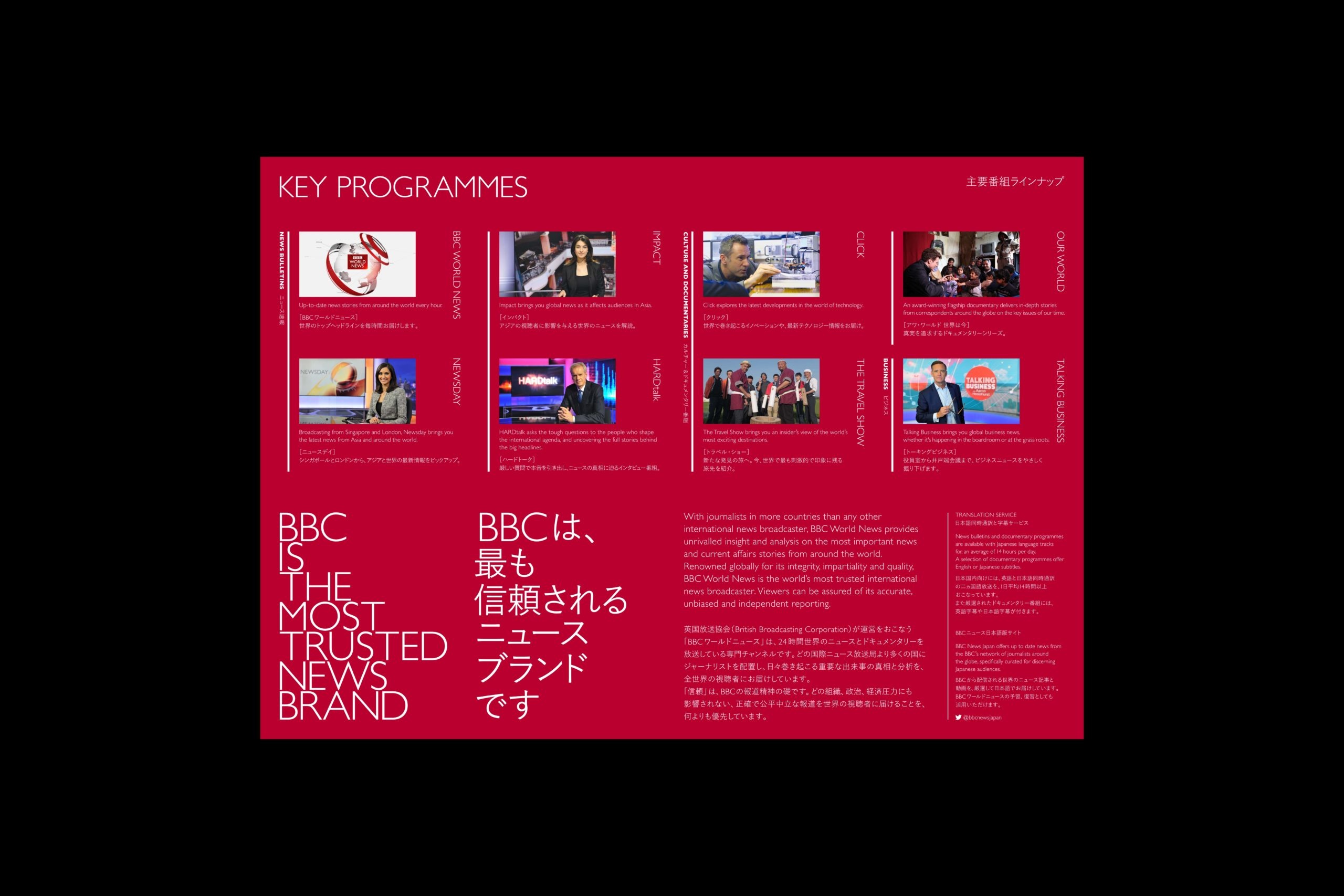 英国のテレビ・ラジオを一括運営し全世界に国際情報を配信している公共放送局「BBC」の日本現地法人「BBC WORLD JAPAN」のプログラムガイドのデザインを手掛けた。