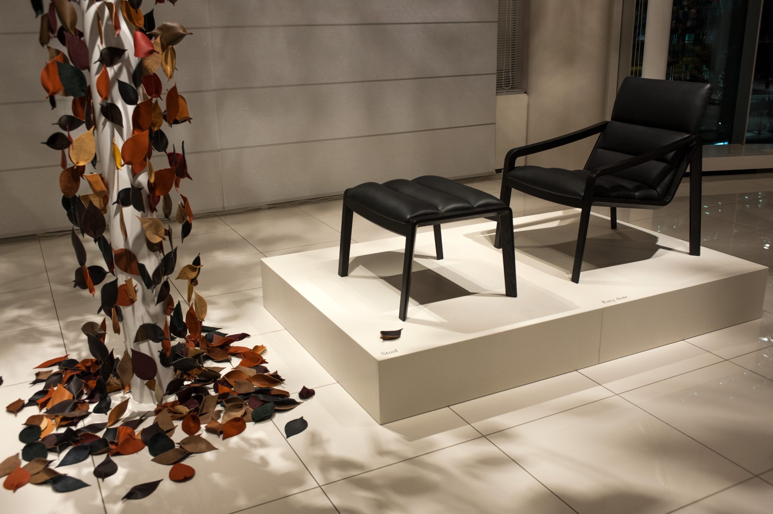 招待状は、イベント体験時の新鮮な驚きを損ねないよう、あえて写真は使用せず、秋の木漏れ日が差し込むさまを表現したタイポグラフィのみの構成とし、コレクションのキーカラーを用いて展開した。リーフレットは、ひとつひとつの椅子が持つ美しいディテールを際立たせつつ、家具と過ごす豊かな時間を想像させる、上質感ある仕上がりを目指した。