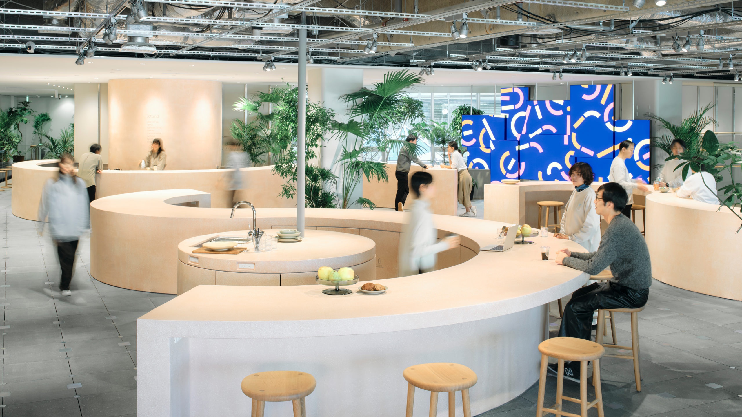 私たちはこのスケッチと情景を建築家と共有し、従来の「長方形の机に並んで働く」風景から、偶発的な出会いや会話が自然に生まれる空間へと転換することを目指しました。