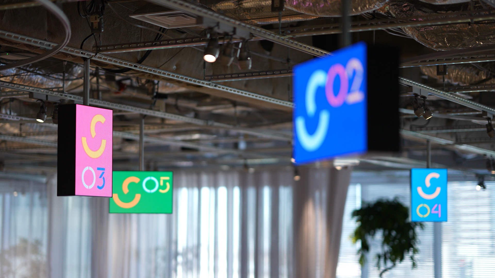「Playful(楽しむ姿勢)」と「Try & Learn(失敗を許容し、学びに変える文化)」をキーワードに、Serendieの価値観が日々の行動として自然に立ち上がる場を目指しました。空間各所のサインやデジタルサイネージのモーションまで一貫して設計することで、Serendieの価値観が情報として掲示されるのではなく、その場の空気として感じられる体験へと落とし込みました。